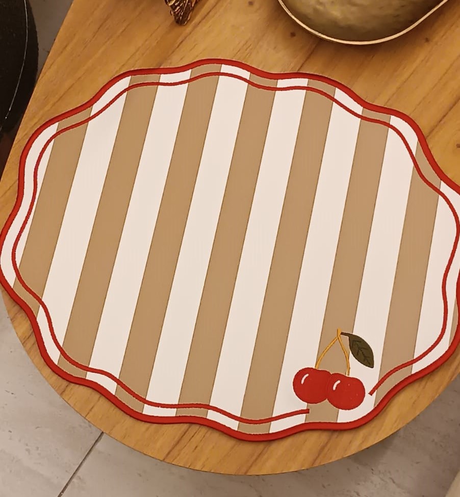 Americano courino impermeavel listrado bege com branco bordado cereja