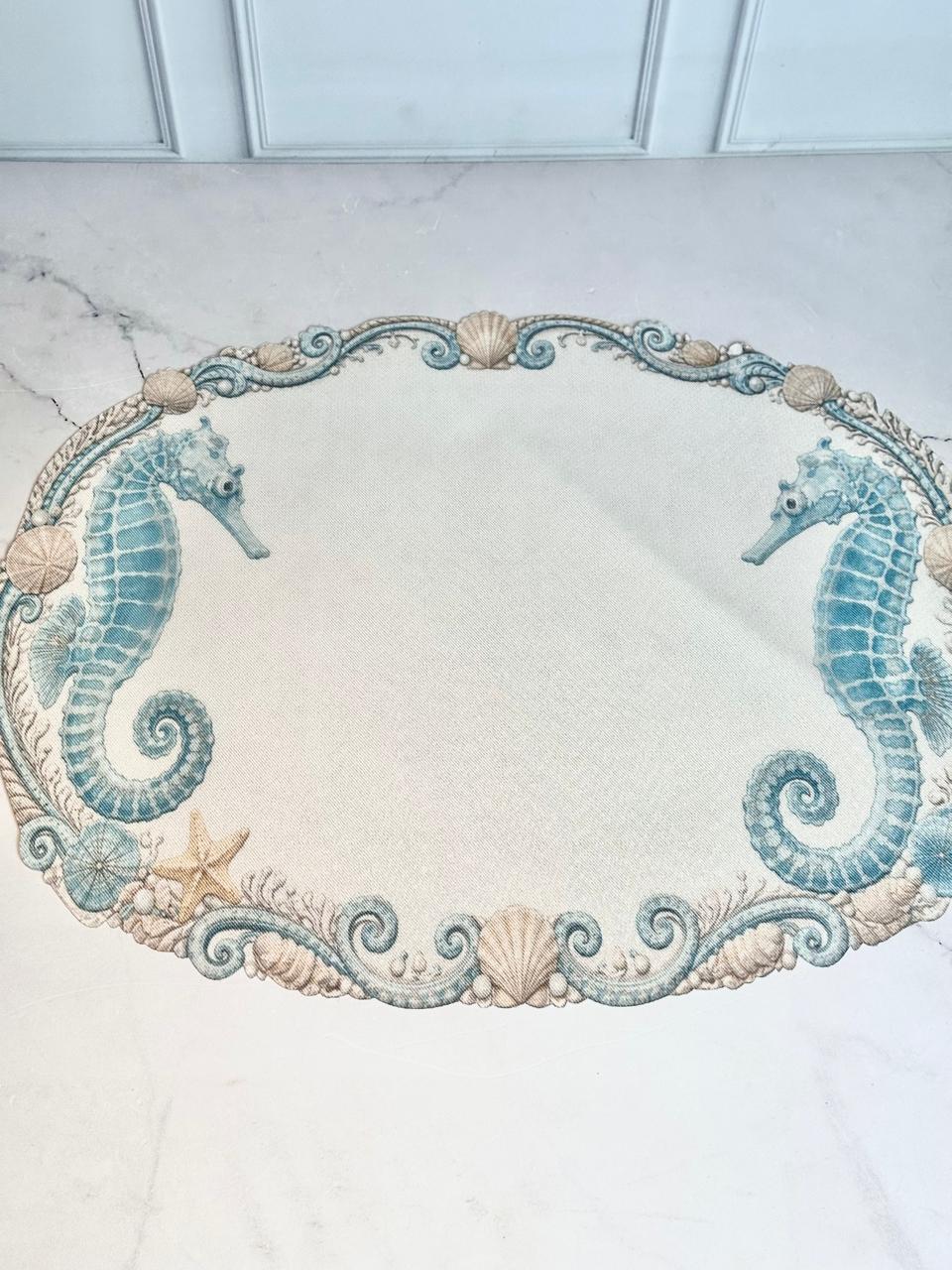 Americano impermeável estampa em hd cavalo marinho e conchas.