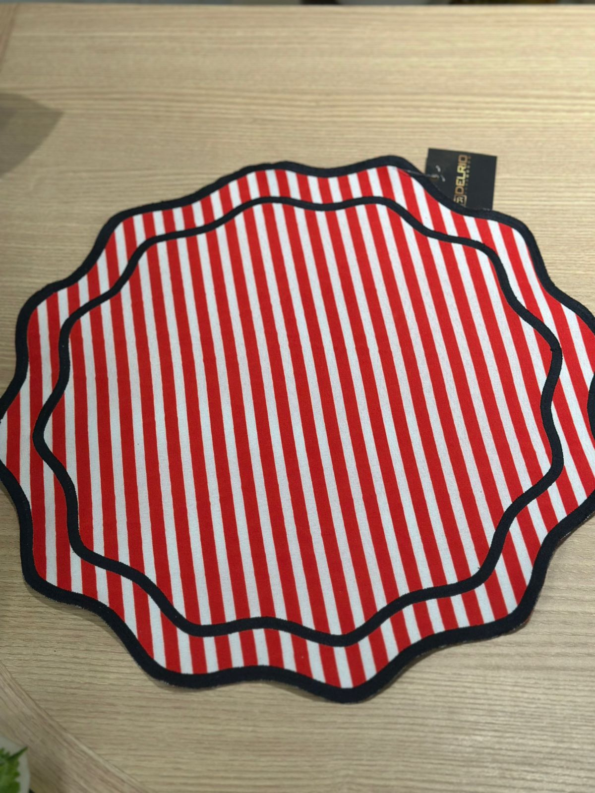 Americano redondo impermeavel de um lado listras vermelhas de outro lado branco com bordado azul