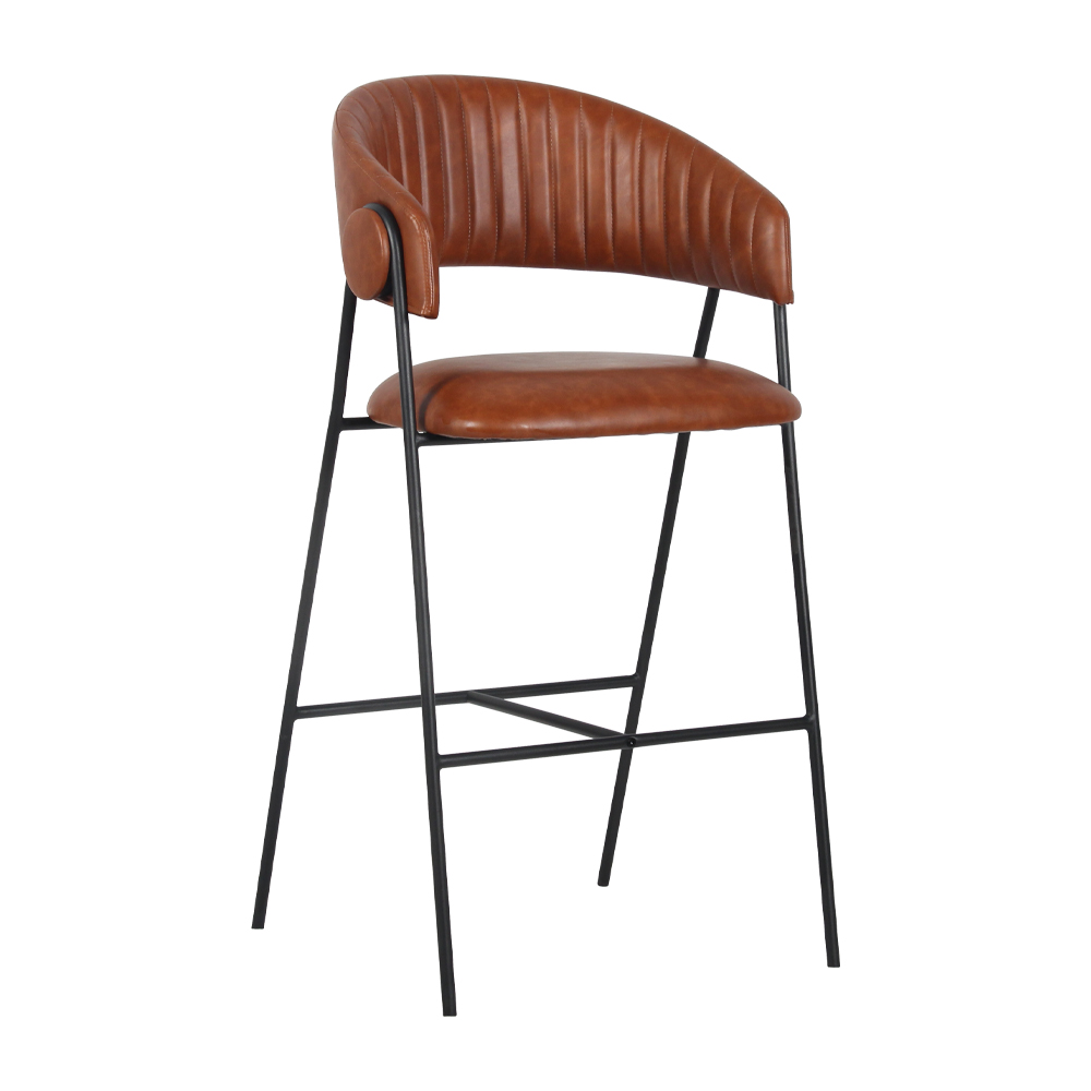 Banqueta estofada em tecido ou poliuretano com base em aço pintado à pó.