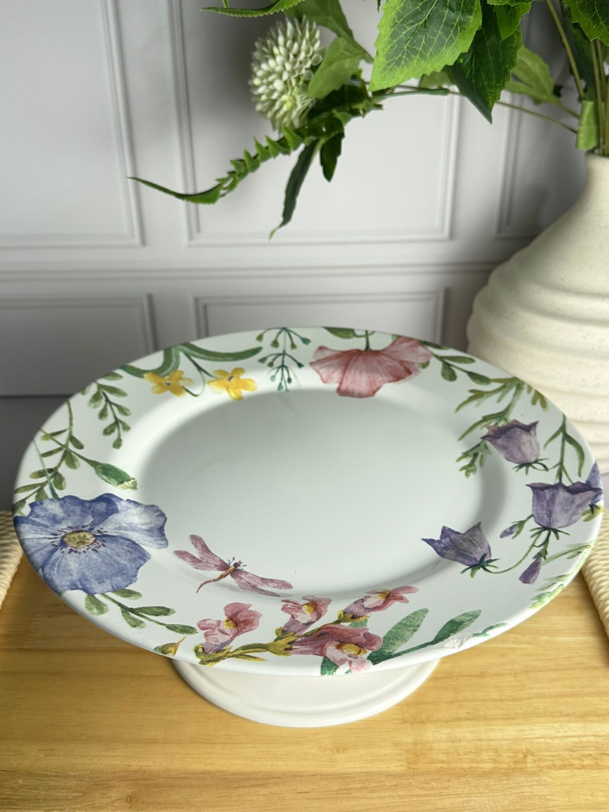 Boleira em cerâmica com detalhes florais e libelula no tamanho 30X10