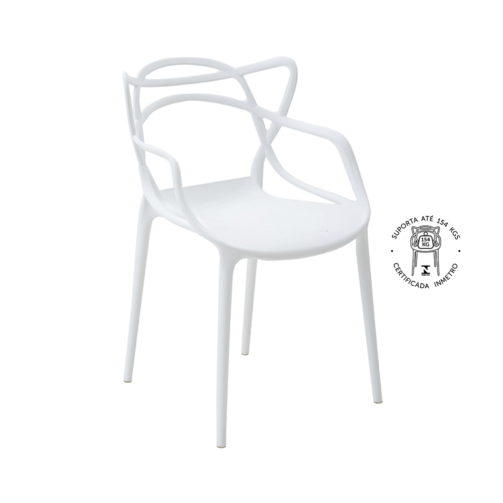 CADEIRA INJETADA EM PEÇA ÚNICA, COM QUATRO PERNAS DE APOIO COM SAPATAS INCOLORES. ENCOSTO VASADO COM ASSENTO INTEIRO ABAULADO. EMPILHÁVEL.