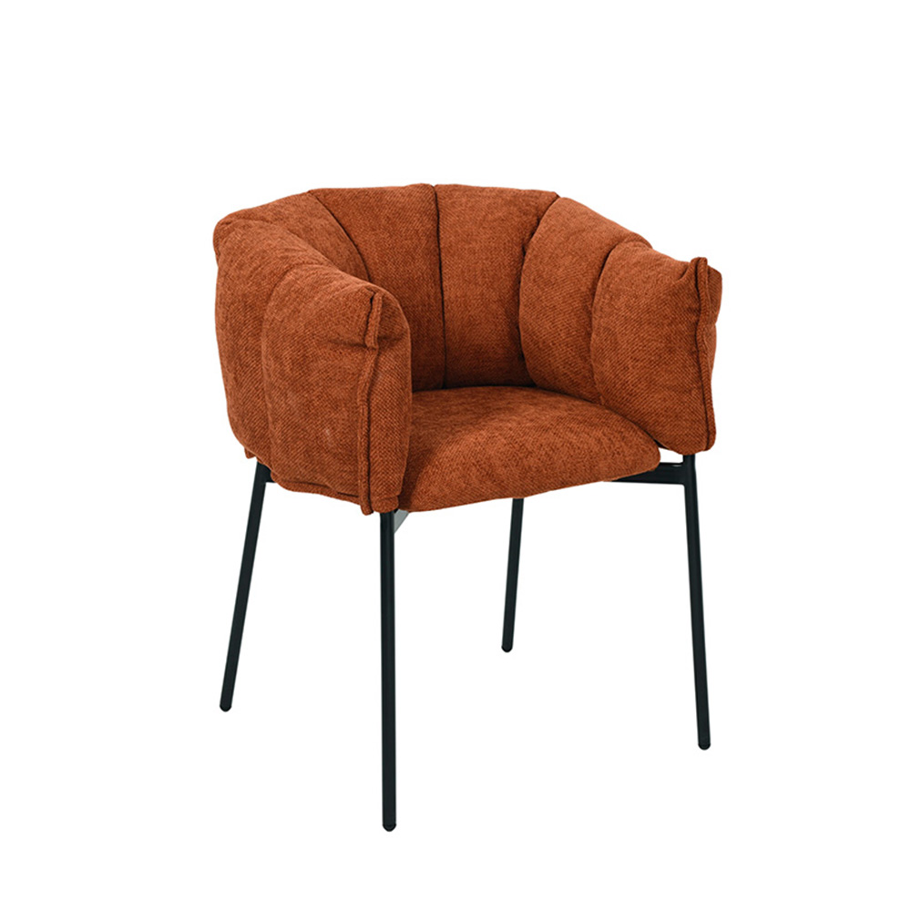 Cadeira com espaldar removível, estofada em tecido e base em aço pintada à pó.
