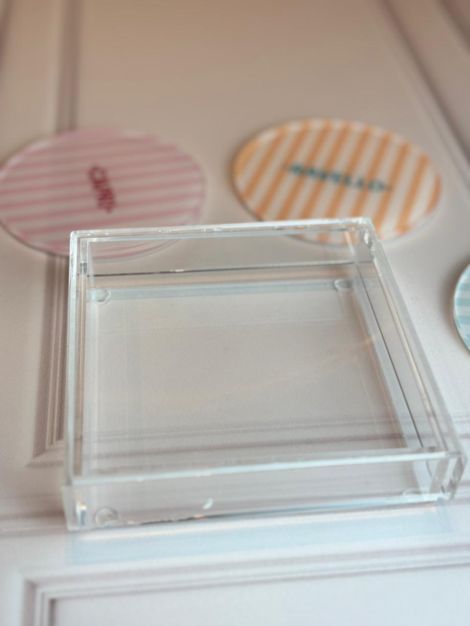 Caixinha de acrílico cristal para armazenar os porta copos que combina com qualquer decoração.