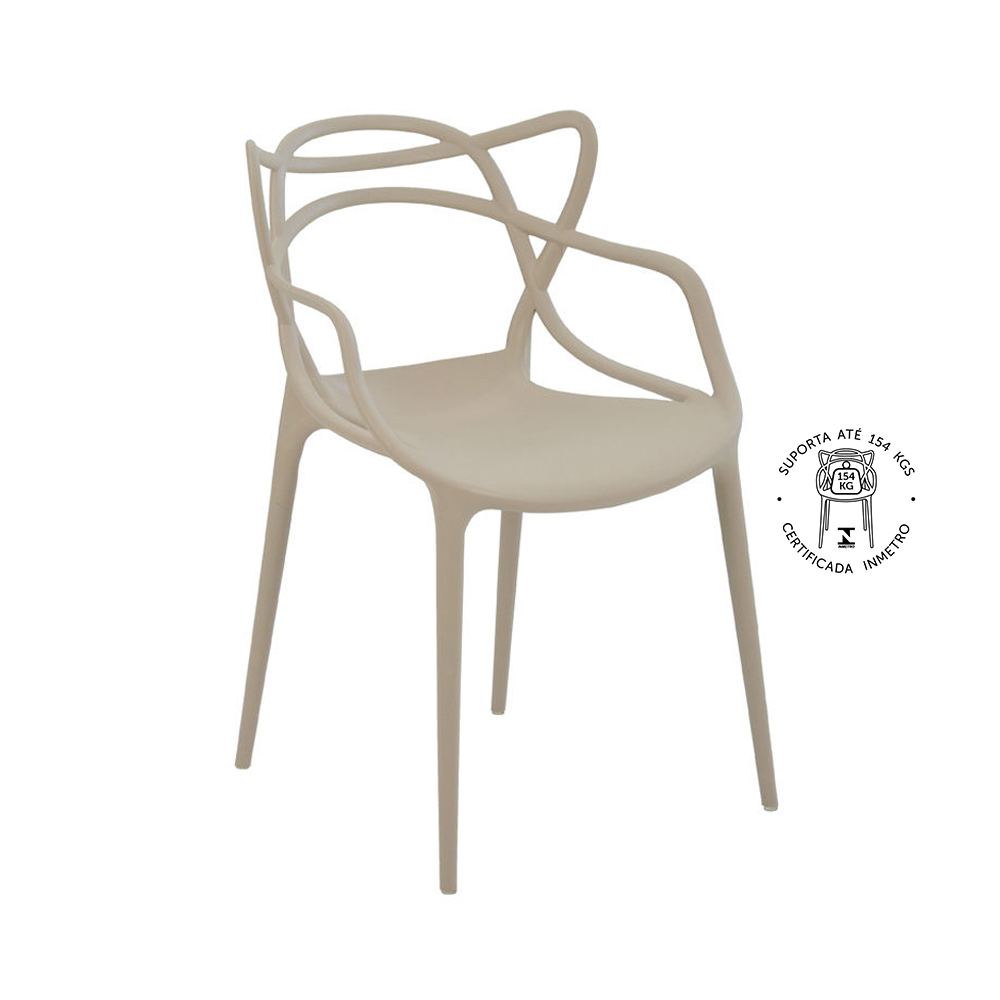 CADEIRA INJETADA EM PEÇA ÚNICA, COM QUATRO PERNAS DE APOIO COM SAPATAS INCOLORES. ENCOSTO VASADO COM ASSENTO INTEIRO ABAULADO. EMPILHÁVEL.