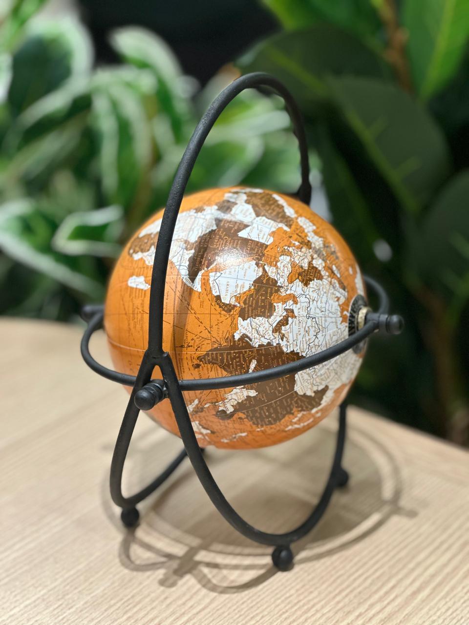 Globo com estrutura em metal preto fosco.
