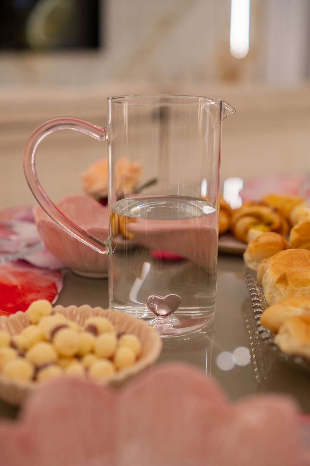 A Jarra Borossilicato 1350ml Coração é a escolha perfeita para quem deseja unir elegância, delicadeza e funcionalidade na mesa posta. Com design encantador e detalhe em formato de coração, ela transforma qualquer ocasião em um momento especial, valorizando a apresentação de bebidas com muito charme.