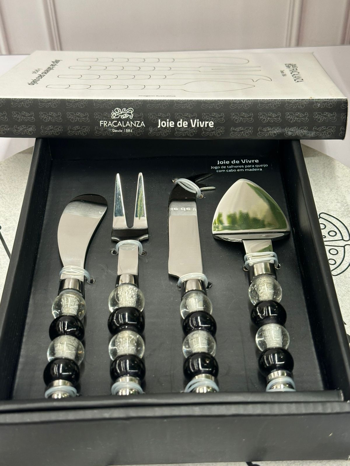 Ideal para servir queijos e aperitivos com praticidade e sofisticação, seja em encontros informais ou ocasiões especiais. Produzidos em aço inox de alta qualidade com cabos em vidro, os talheres oferecem resistência, durabilidade e conforto ao manusear. Versátil e funcional, o conjunto combina organização e elegância à mesa, acrescentando um toque moderno e delicado à apresentação dos pratos.