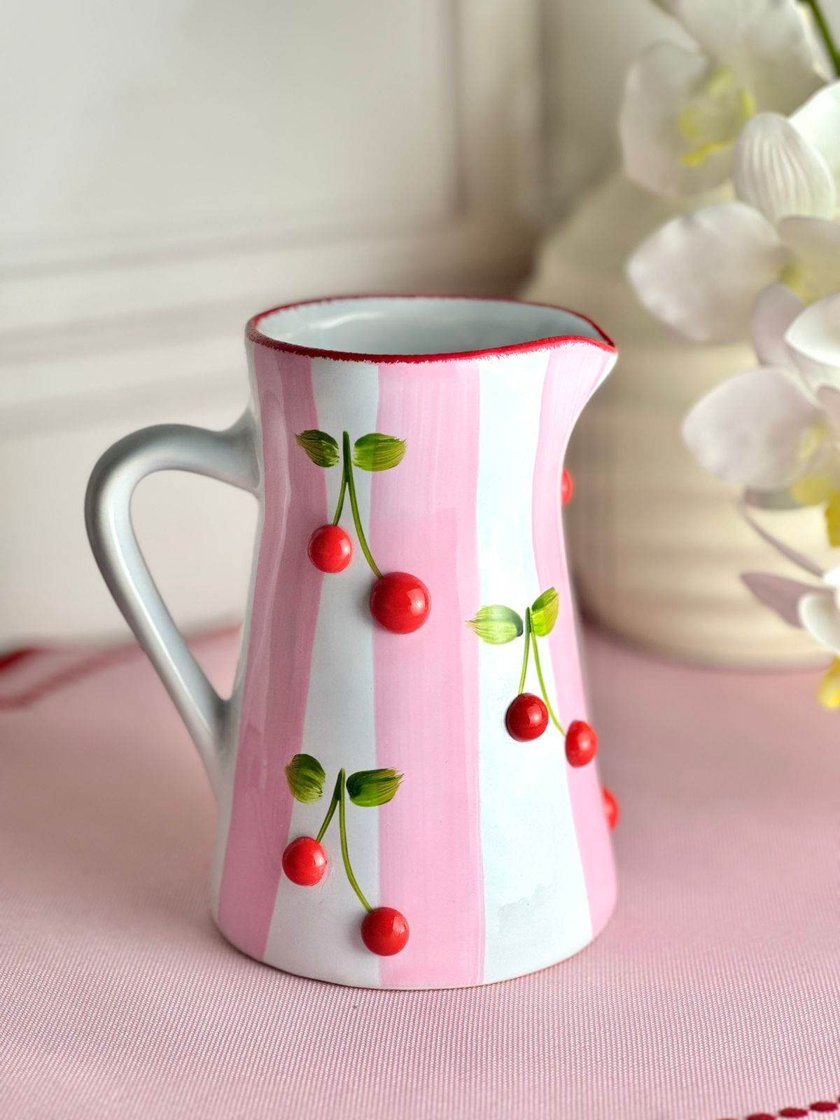 Leiteira artesanal cereja listra rosa