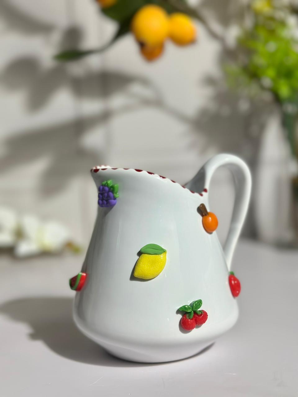 Transforme a hora do café em um momento lúdico e sofisticado com a nossa Mini Leiteira Artesanal. Cada peça é moldada individualmente, trazendo pequenas frutinhas em alto relevo que parecem ter acabado de ser colhidas. É o equilíbrio perfeito entre o rústico do artesanato e a elegância da cerâmica artística.