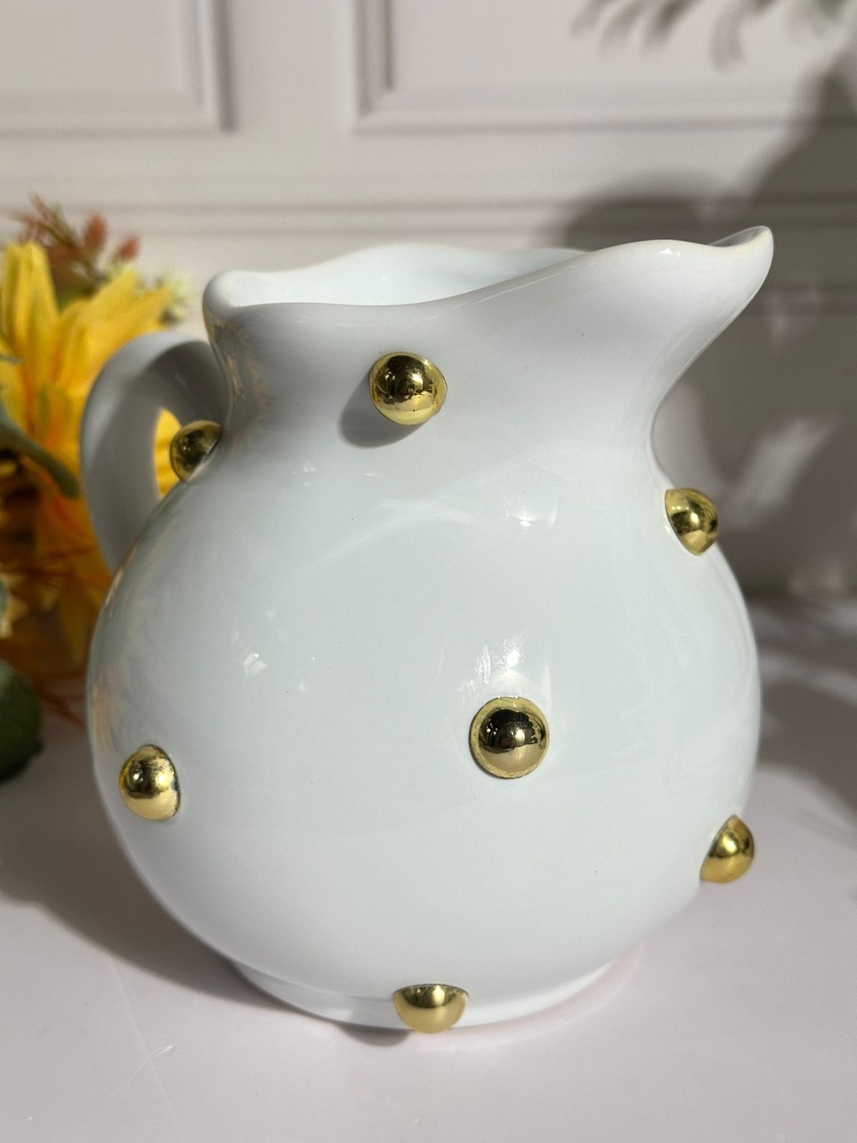 Eleve o nível da sua hora de servir com uma peça que é pura arte. Essa peça artesanal combina a nostalgia do padrão poá com a sofisticação do ouro. O diferencial está no toque: as esferas douradas são aplicadas em alto relevo, criando uma textura única e um brilho tridimensional que ganha vida sob a luz