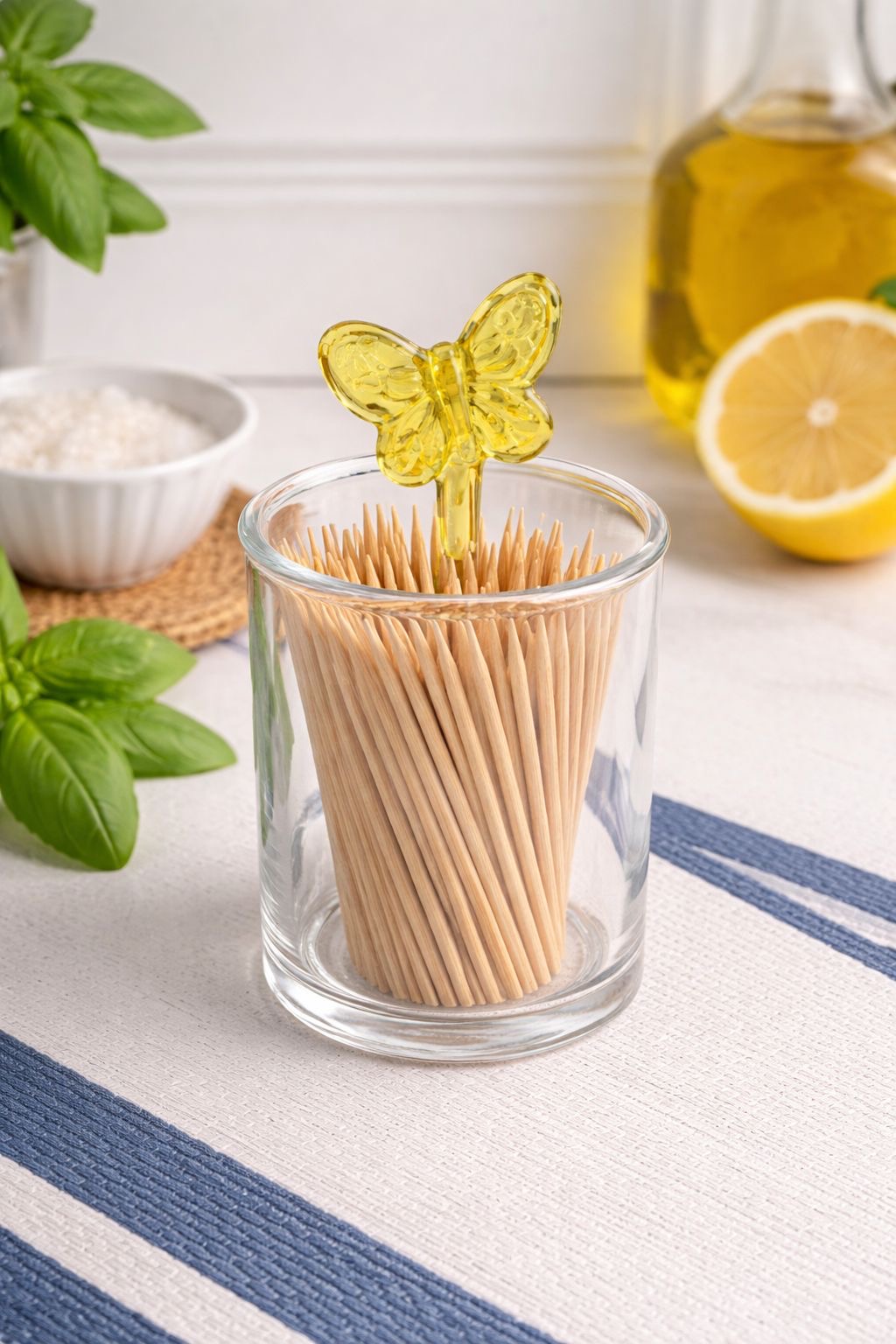 Porta palito decorativo com formato de borboleta. Peça funcional e charmosa para organizar palitos de dente na mesa ou cozinha. Design delicado que combina praticidade com um toque especial de decoração para o dia a dia.