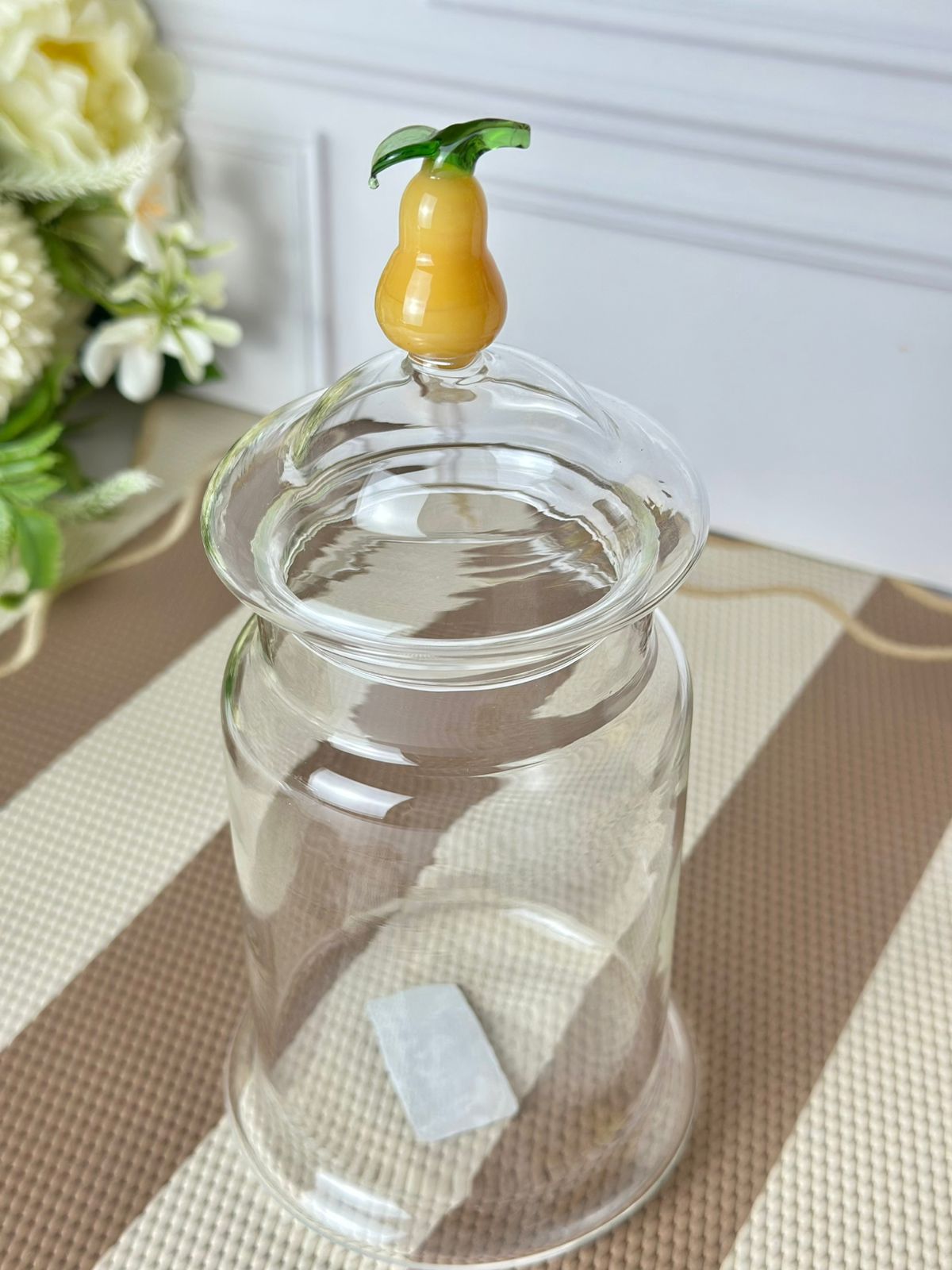 Pote em vidro borossilicato transparente, possui tampa com pegador em vidro em formato de pêra. Com capacidade para 550 ml, e é ideal para armazenar biscoitos ou outros alimentos, ou usar de forma decorativa na cozinha.