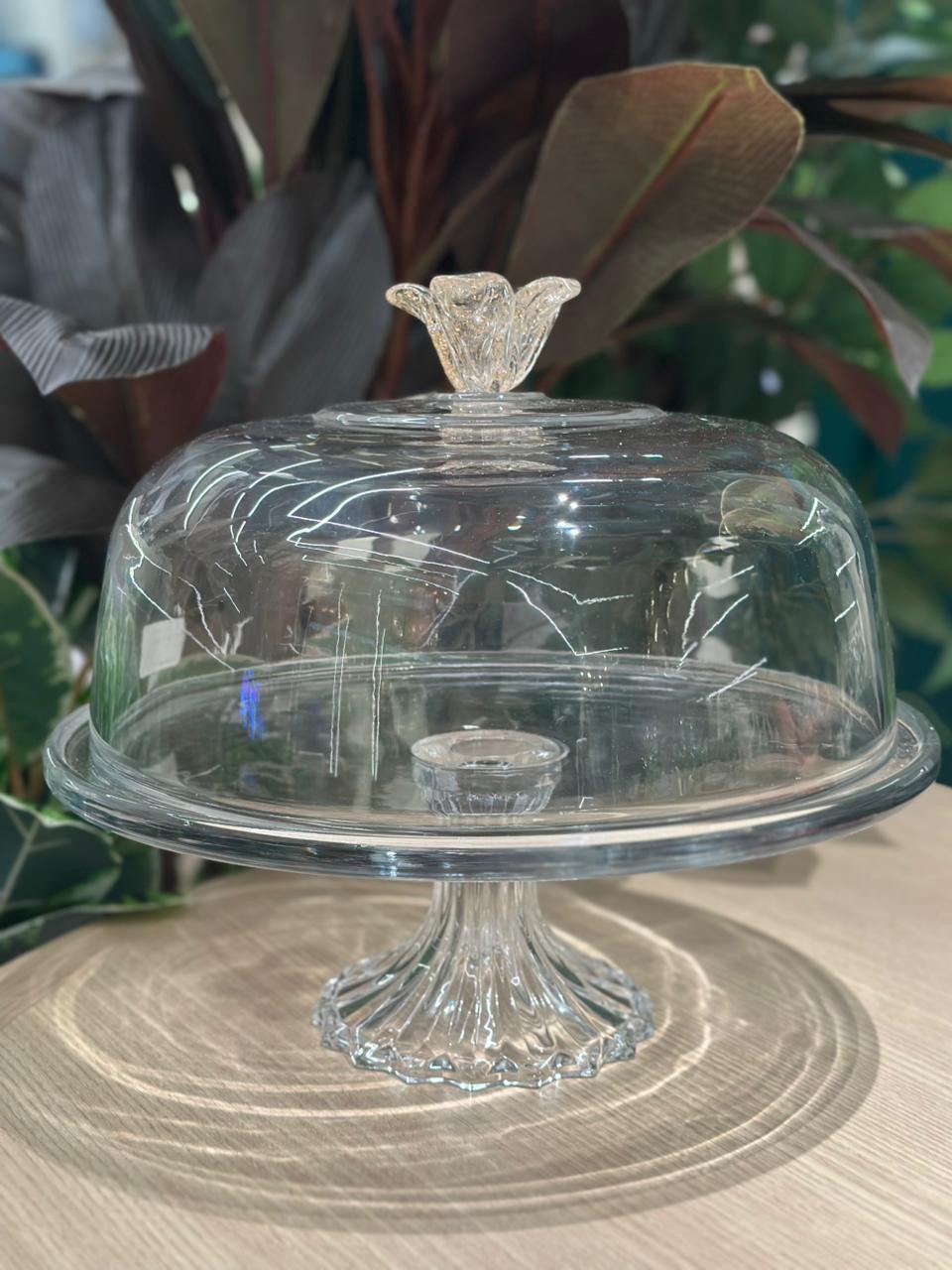 Prato para Bolo de Cristal Ecológico com Pé e Tampa Flower 30cm x 29cm