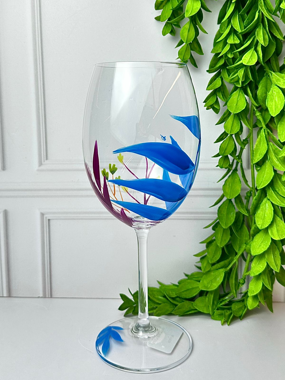 Taça Vinho Cristal Folhas Azuis