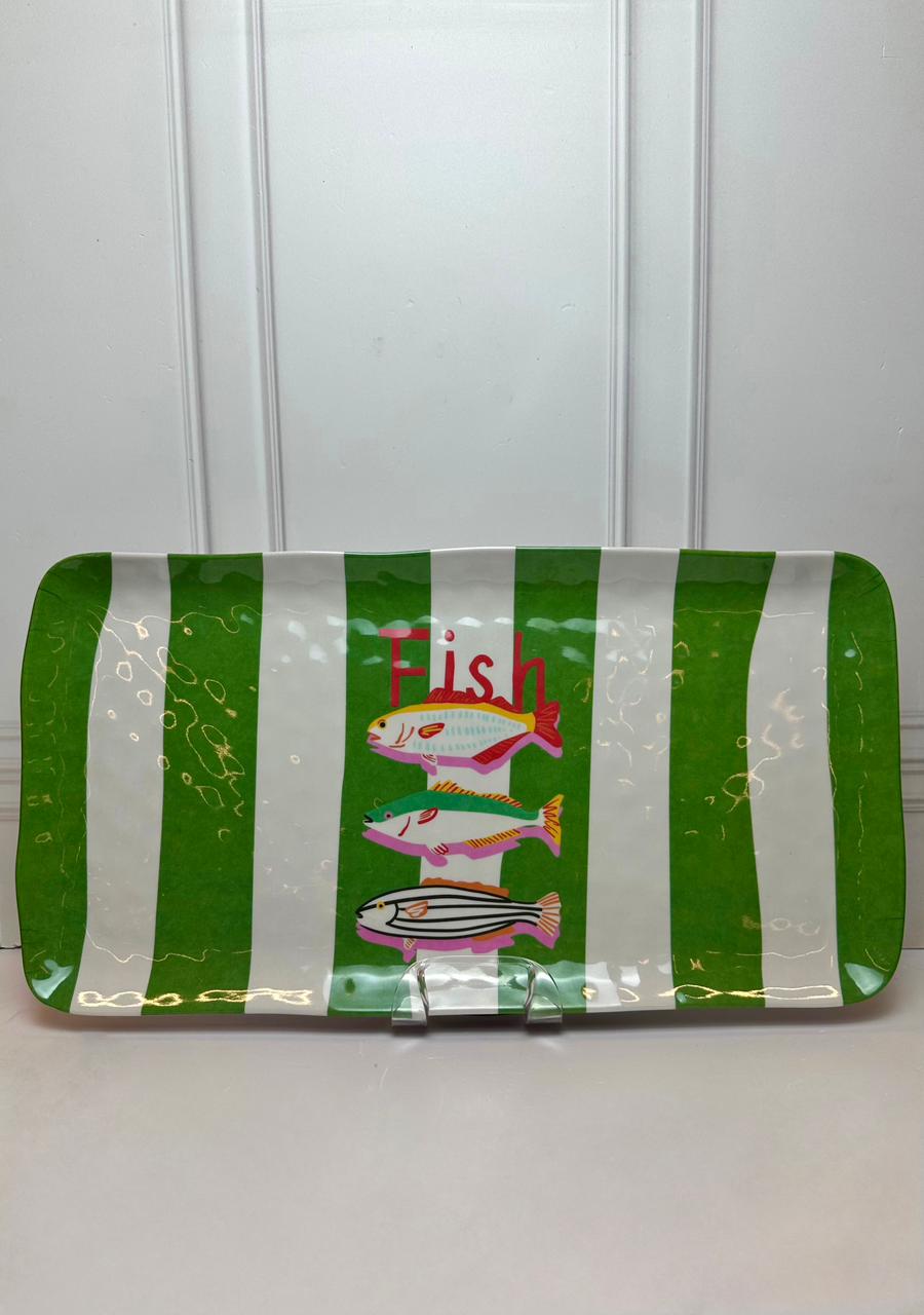 A Travessa Retangular em Melamina Peixes Verde é a peça definitiva para quem deseja servir com impacto visual e máxima praticidade. Com uma estampa vibrante em uma paleta de cores energética, esta travessa transforma qualquer serviço de mesa em um cenário tropical sofisticado.