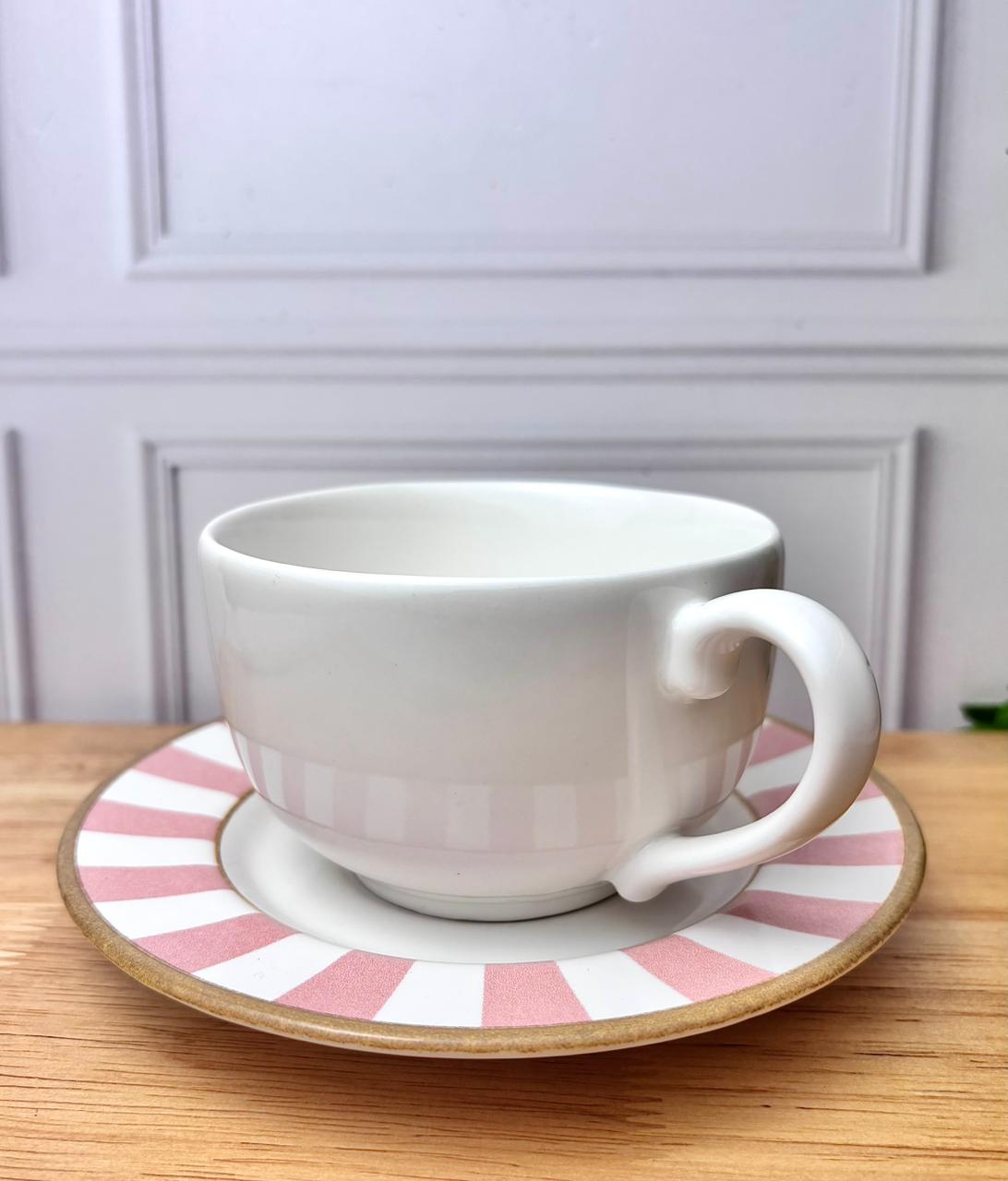 É a definição perfeita de charme e modernidade à mesa. Com seu padrão listrado em rosa delicado contrastando com o branco puro, cada peça transmite leveza, feminilidade e um estilo contemporâneo que encanta à primeira vista. O acabamento em filete dourado acrescenta um toque de sofisticação, tornando a composição ainda mais refinada e atemporal.