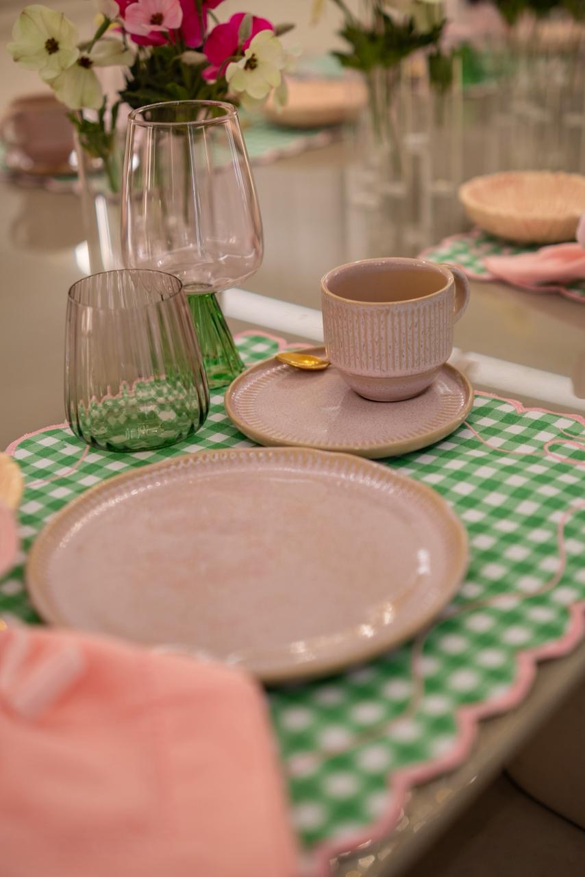 A textura artesanal de cada peça confere um charme inconfundível a essa xícara de chá.